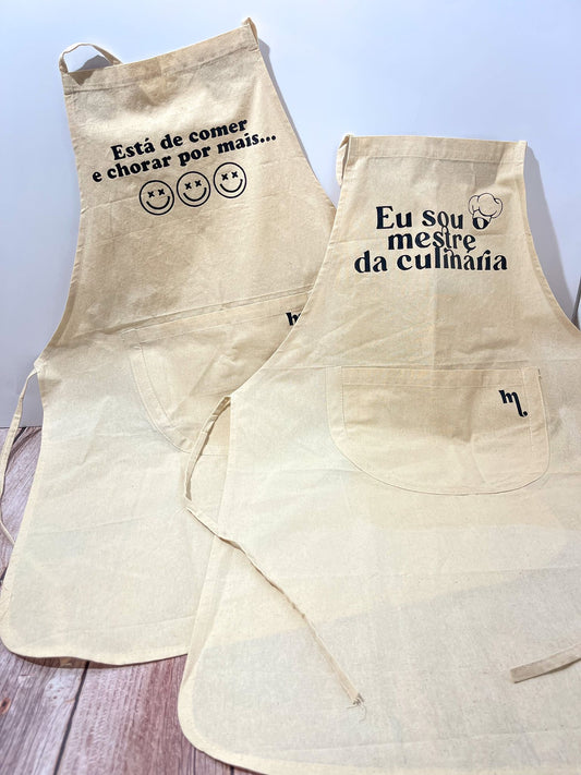 Avental com a frase - "Eu sou o mestre da culinária"